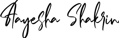 You can use this online signature creator to create a handwritten signature for the name Aayesha Shakrin. This is the best online autograph maker.