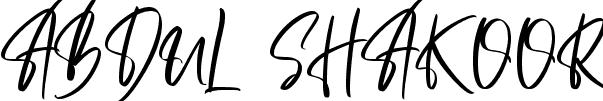 This is the best signature style for the ABDUL SHAKOOR name. Also you like these signature font (Allison Tessa Oblique). Mix name signature.