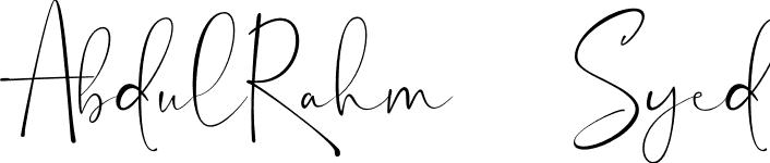 This is the best signature style for the AbdulRahman Syed name. Also you like these signature font (TheQueenthineDemo). Mix name signature.