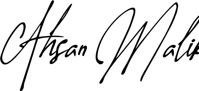 This is the best signature style for the Ahsan Malik name. Also you like these signature font (Almondita). Mix name signature.