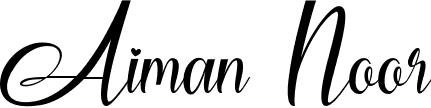 You can use this online signature creator to create a handwritten signature for the name Aiman Noor. This is the best online autograph maker.