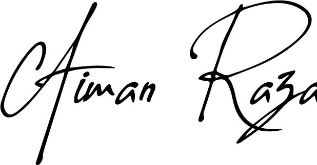This is the best signature style for the Aiman Raza name. Also you like these signature font (Autography-DOLnW.otf). Mix name signature.