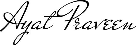 You can use this online signature creator to create a handwritten signature for the name Ayat Praveen. This is the best online autograph maker.