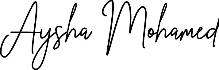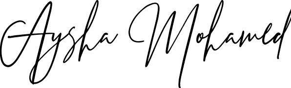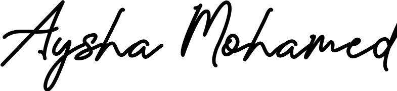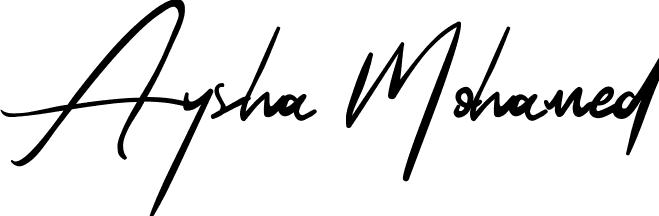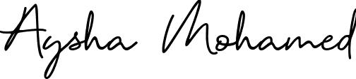 This is the best signature style for the Aysha Mohamed name. Also you like these signature font (Prestige Signature Script - Demo). Mix name signature.
