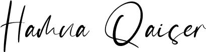 You can use this online signature creator to create a handwritten signature for the name Hamna Qaiser. This is the best online autograph maker.
