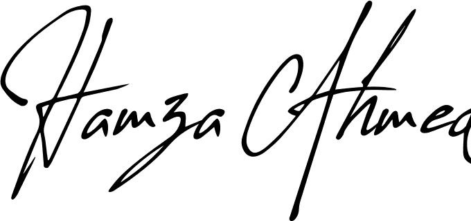 This is the best signature style for the Hamza Ahmed name. Also you like these signature font (Allison Tessa Oblique). Mix name signature.