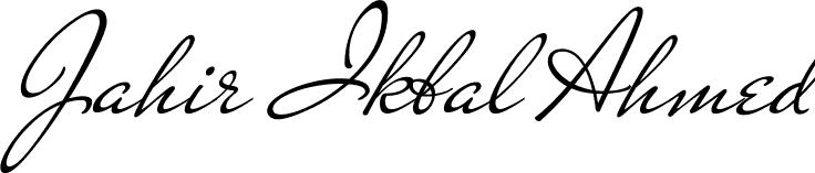Also You can easily find your signature by using the search form. We will create Jahir Ikbal Ahmed name handwritten signature images for you free of cost using Lihataja sign style.