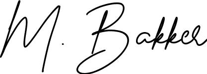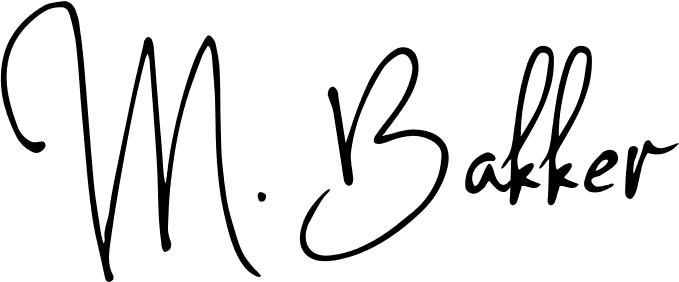 This is the best signature style for the M. Bakker name. Also you like these signature font (Concetta Kalvani Signature). Mix name signature.