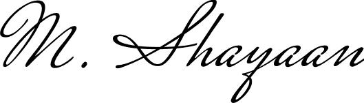 You can use this online signature creator to create a handwritten signature for the name M. Shayaan. This is the best online autograph maker.