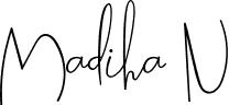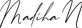 You can use this online signature creator to create a handwritten signature for the name Madiha N. This is the best online autograph maker.