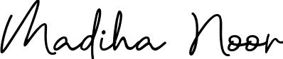 You can use this online signature creator to create a handwritten signature for the name Madiha Noor. This is the best online autograph maker.