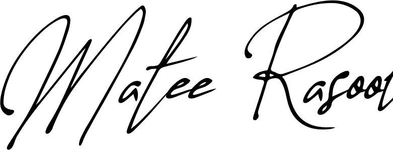 You can use this online signature creator to create a handwritten signature for the name Matee Rasool. This is the best online autograph maker.