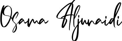 You can use this online signature creator to create a handwritten signature for the name Osama Aljunaidi. This is the best online autograph maker.