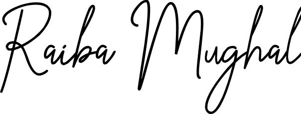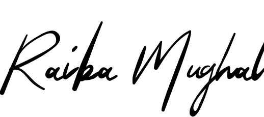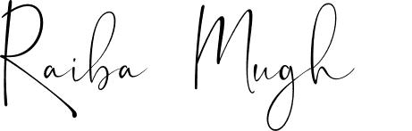 This is the best signature style for the Raiba Mughal name. Also you like these signature font (TheQueenthineDemo). Mix name signature.