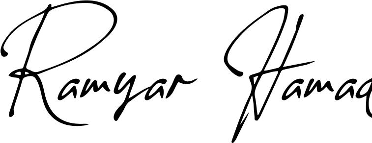 You can use this online signature creator to create a handwritten signature for the name Ramyar Hamad. This is the best online autograph maker.