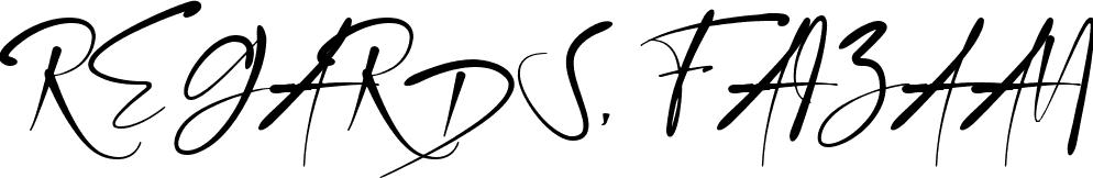This is the best signature style for the REGARDS, FAIZAAN name. Also you like these signature font (Holligate Signature Demo). Mix name signature.