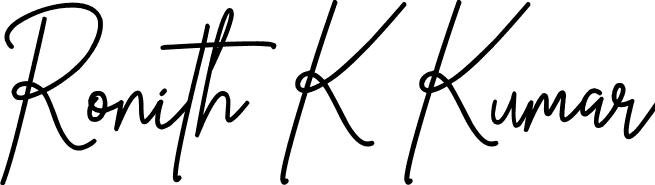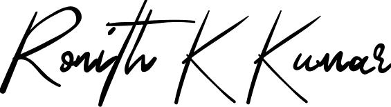 This is the best signature style for the Ronith K Kumar name. Also you like these signature font (Prestige Signature Script - Demo). Mix name signature.