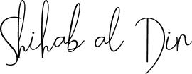 This is the best signature style for the Shihab al Din name. Also you like these signature font (Allison Tessa Oblique). Mix name signature.