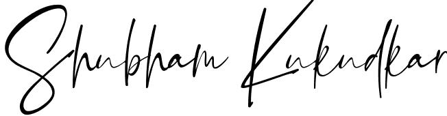 You can use this online signature creator to create a handwritten signature for the name Shubham Kukudkar. This is the best online autograph maker.