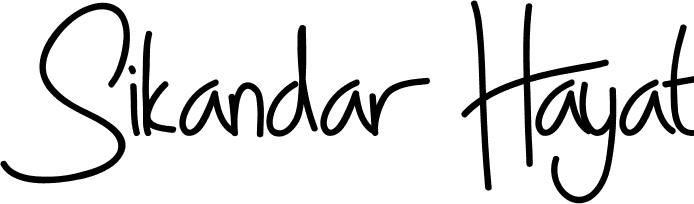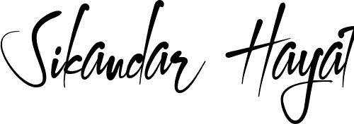 This is the best signature style for the Sikandar Hayat name. Also you like these signature font (Honeymoon Avenue Script Demo). Mix name signature.