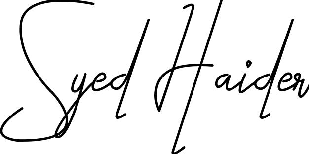 This is the best signature style for the Syed Haider name. Also you like these signature font (Black Angel Demo). Mix name signature.