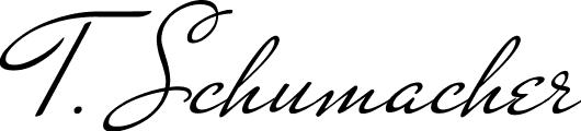 This is the best signature style for the T. Schumacher name. Also you like these signature font (MrDafoe-Regular). Mix name signature.
