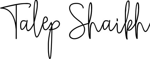 You can use this online signature creator to create a handwritten signature for the name Talep Shaikh. This is the best online autograph maker.